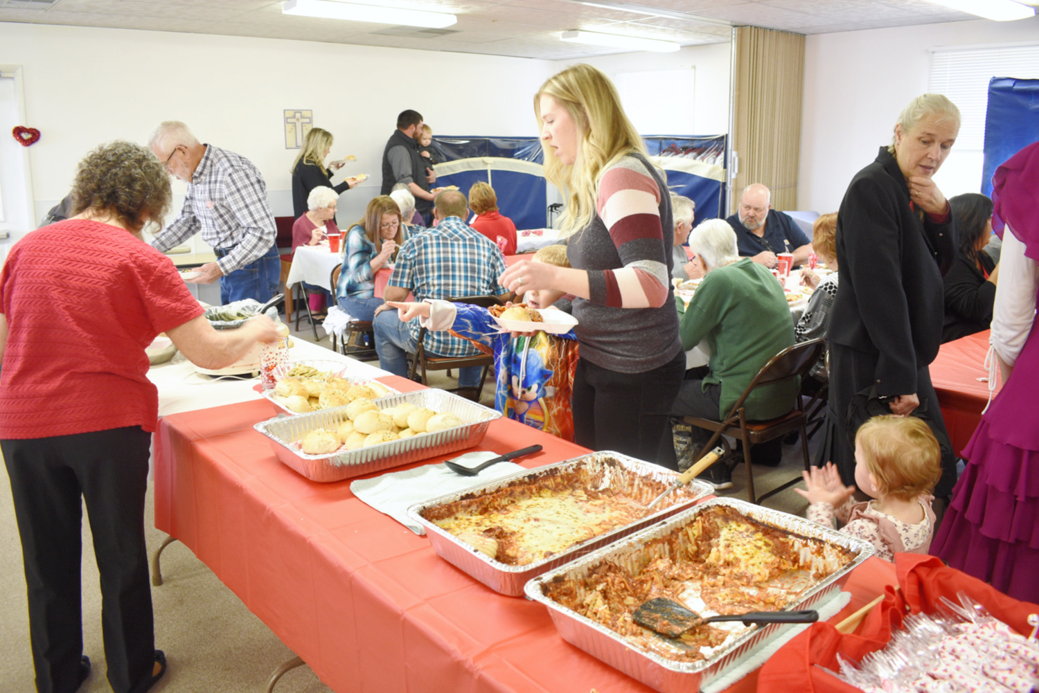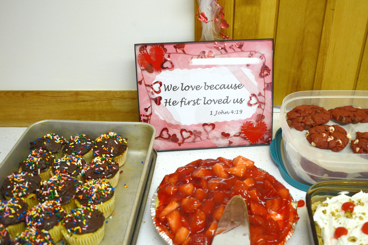 At this year’s church Valentine fellowship meal at RHBC, we had over 60 people gathered together to enjoy a special lasagna dinner and many tasty and festive desserts. Below are photos from the meal time.